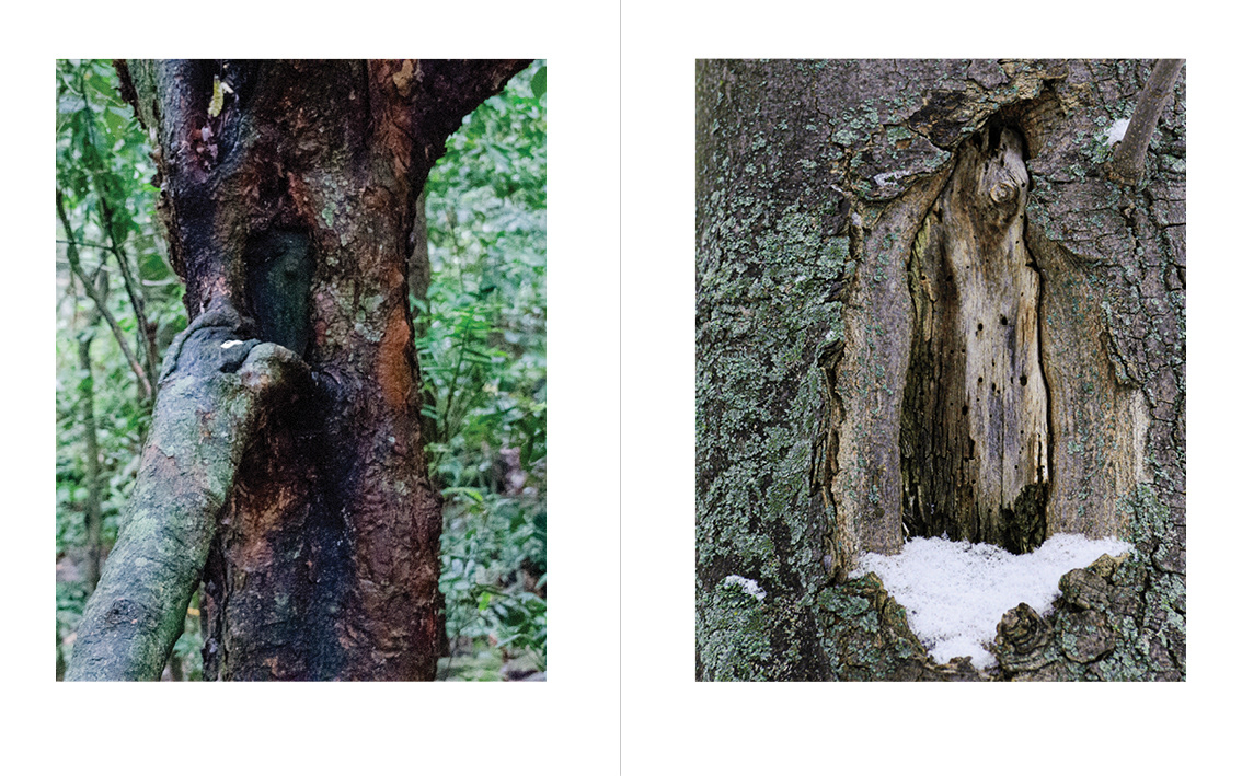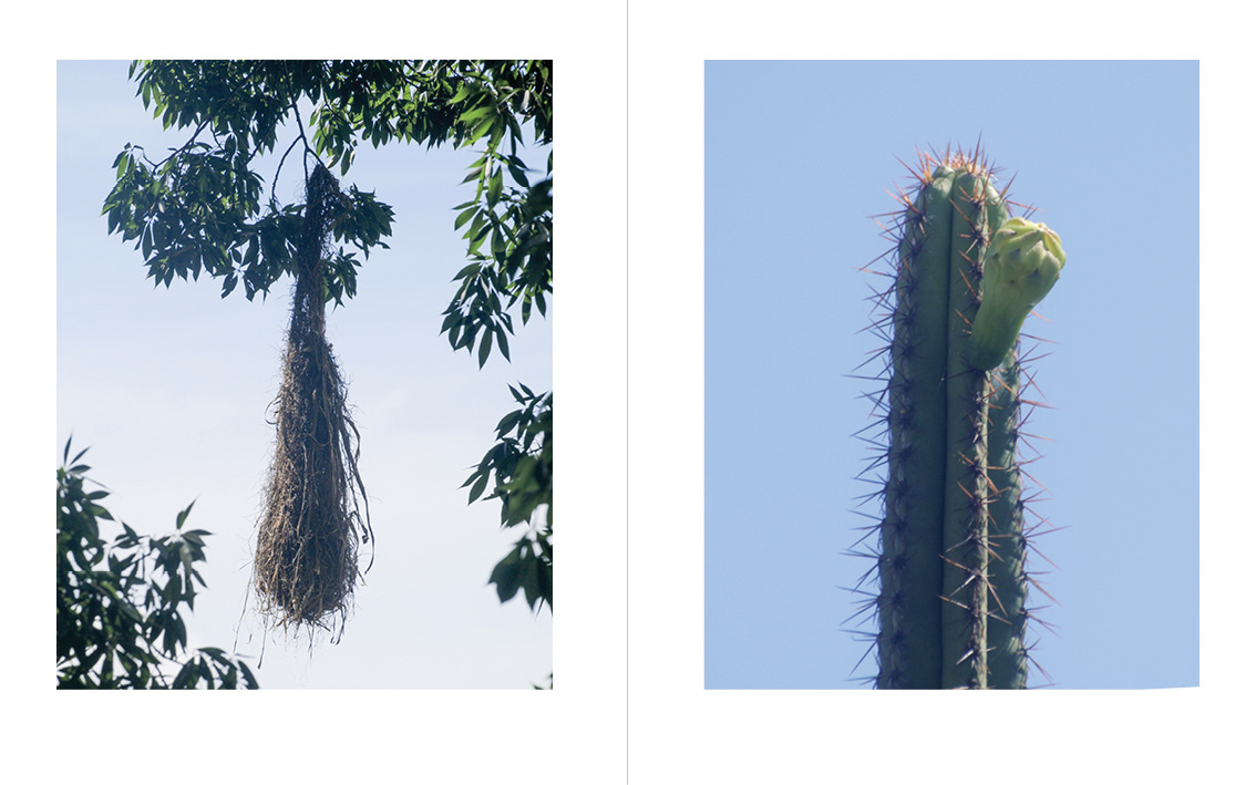 To highlight the act of CUTTING, I displayed the original photo and where it was taken on the left page, and on the right, the cutout on a grey background.